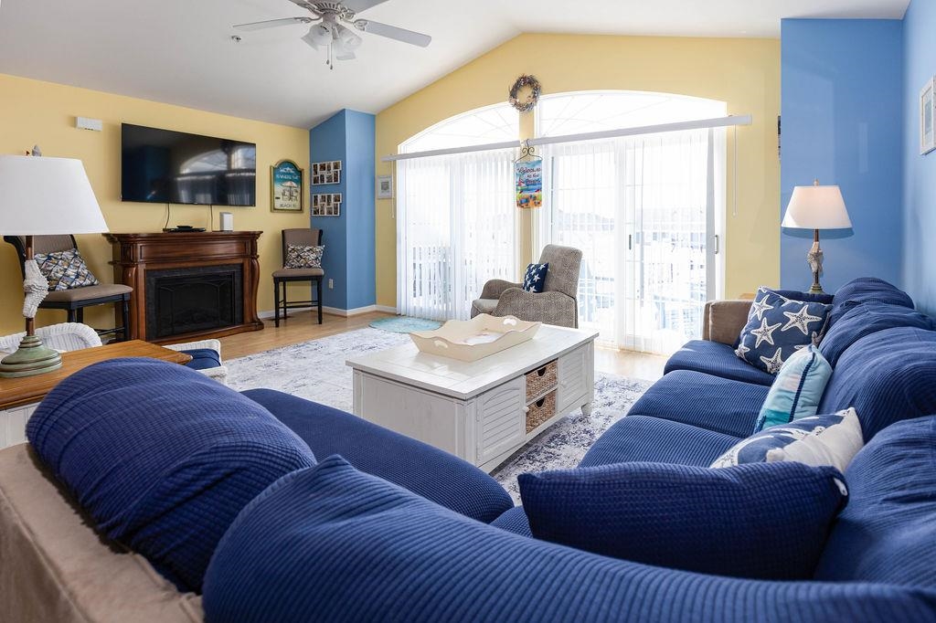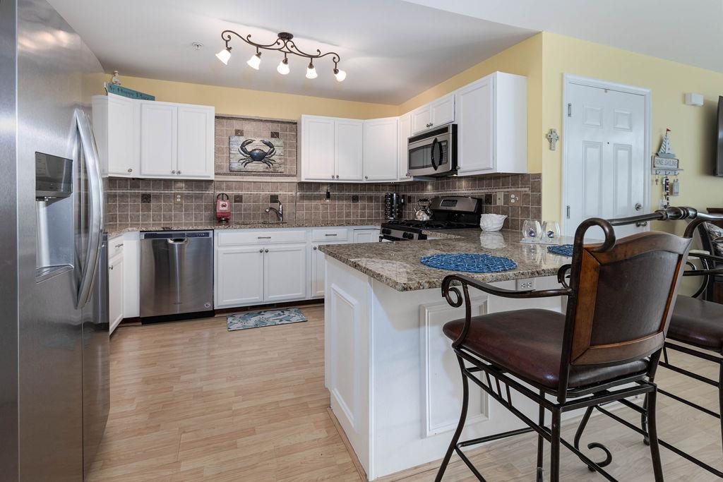 Welcome to 409 W. Leaming Avenue, Unit 200 — a top-floor, fully furnished, never rented and beautifully maintained 3-bedroom, 2-bath home tucked into Wildwood’s highly desirable Marina District. From the moment you step inside, you’ll appreciate the dramatic vaulted ceilings and bright, open living space that flows effortlessly onto a large front deck, perfect for morning coffee, evening cocktails, and entertaining friends after a day on the water or at the beach. This location truly shines for boating and lifestyle enthusiasts. The Marina District offers easy bay access, numerous nearby boat slip rentals, fantastic fishing and boating, and a vibrant mix of popular dining spots and live entertainment venues — all just steps from your door. You’re also just minutes from the Wildwood Convention Center, home to year-round events and tournaments including wrestling, cheerleading and basketball championships, dance competitions, and indoor marching band events, making this an ideal year-round getaway or investment opportunity. Inside, the home features a stylish kitchen with granite countertops, a deluxe tile backsplash, and stainless-steel appliances, while both full bathrooms are tastefully tiled. Additional highlights include a cozy fireplace, two large, recently replaced quality sliding glass doors, upgraded laminate flooring throughout the living and dining areas, energy-efficient natural gas heat and hot water, and central A/C replaced approximately 2.5 years ago. The extra clean common areas shine because none of the current 6 unit owners in the building rent their homes. Parking and storage are a breeze with two-car garage parking and a huge private ground-floor storage room, perfect for bikes, beach gear, fishing equipment, and all your sporting essentials. The home is being offered fully furnished, including outdoor deck furniture, minus a short exclusion list of personal items. The modest condo fee covers the master building, fire and flood insurance, as well as maintenance of the common areas. The condo association is fiscally responsible and does an excellent job maintaining the property, offering peace of mind and pride of ownership. Whether you’re looking for a carefree shore retreat, an investment with strong appeal, or a place to fully embrace the Wildwood Marina lifestyle, this Beauty delivers comfort, location, and value — all wrapped up in one exceptional coastal home. Better hurry before she gets away!